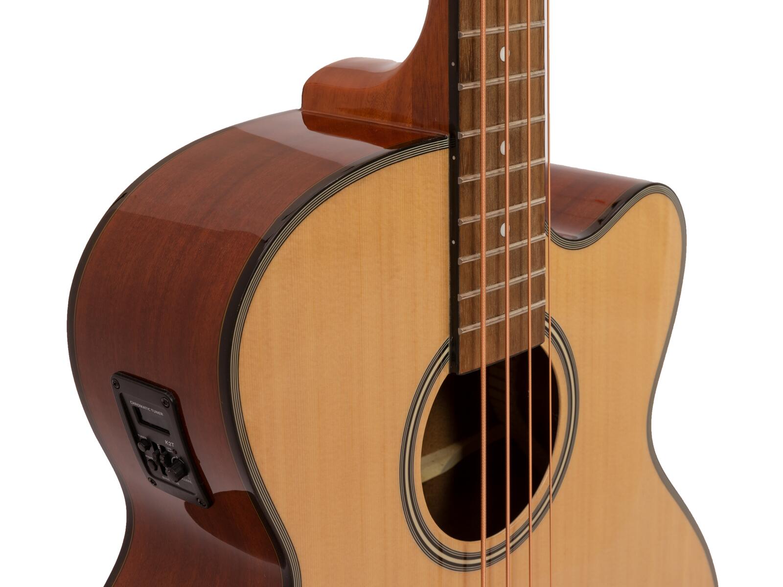 The Dimavery AB- 450: Powerful sound and excellent workmanshipAre you looking for a robust and cleanly manufactured acoustic bass with honest, powerful sound at a reasonable price? The Dimavery AB-450 is the right choice for you!You strive for the best music...and this can only be achieved with solid materials: the Agathis body gives your instrument its characteristic warm basic sound. The spruce top provides brilliance and a clearly defined attack. The neck is made of Nato wood and a rosewood fretboard with 24 precise frets. This combination produces a pleasant warm tone with very good sustain and touch characteristics. The binding along the body, the sound hole and the fingerboard gives the bass its attractive appearance.The hardware: Functional, rock-solid and resilientFrom the smooth-running and precisely adjustable tuning mechanisms to the firmly screwed jack socket: The hardware is convincing all along the line.Adjust the neck curvature with the strings stretched. The neck adjustment screw is located under the top edge of the sound hole.The AB-450 also features a preamp with 3-band equalizer. It convinces with a powerful, clear sound and easy handling thanks to the center raster of the controls. The Piezo pickup is integrated in the bridge and works cleanly and with very little feedback.