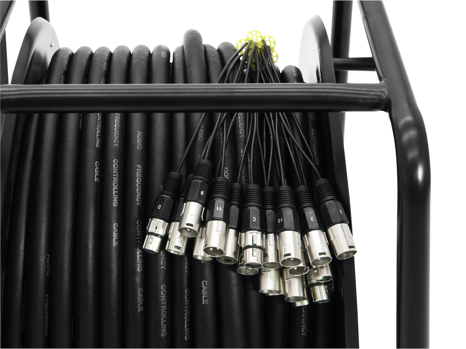 • Highly flexible 50 m mulitcore cable, split into 16 plugs (female) and 4 plugs (male)