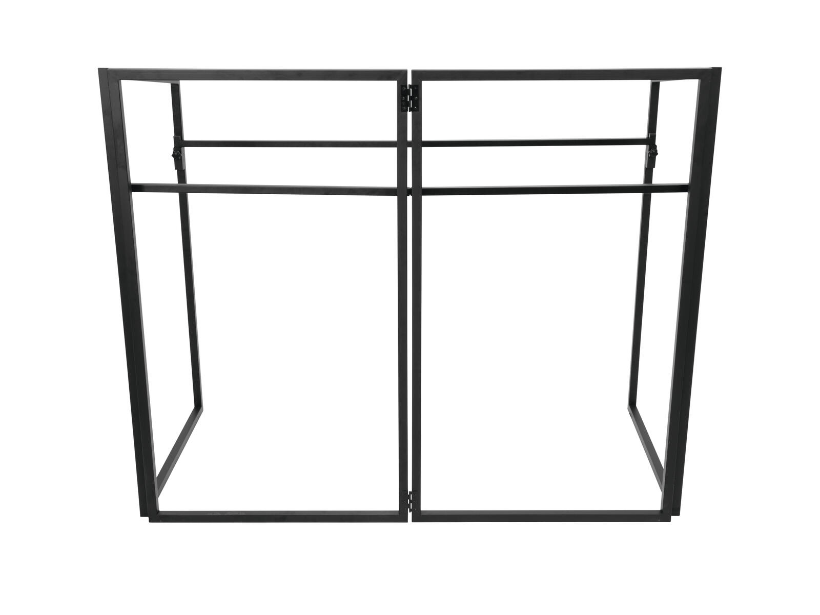 A must for mobile DJsHere you get a stable DJ stand, which you can set up in no time at all without tools and transport very easily. The Mobile DJ Stand helps you to prepare your performance neatly and professionally in no time at all. Quick setup and professional lookThe DJ stand can be set up by yourself within a few minutes without any tools. You cover the stable folding frame with the included cover. This not only makes the wiring disappear, but also provides a professional look. Illuminate the cover's stretch fabric from the inside, for example with two small LED spots. Sturdy and easy to transportThe folding frames of the DJ stand are made of robust steel tubes. They have a weight of 22 kg, but can carry 50 kg: a weight that most DJ setups never reach and which shows how stable the structure is. Your equipment stands on the firmly anchored wooden plate, which is covered with non-slip felt. The DJ stand is delivered folded up in a bag. So you can transport it comfortably and space-saving.