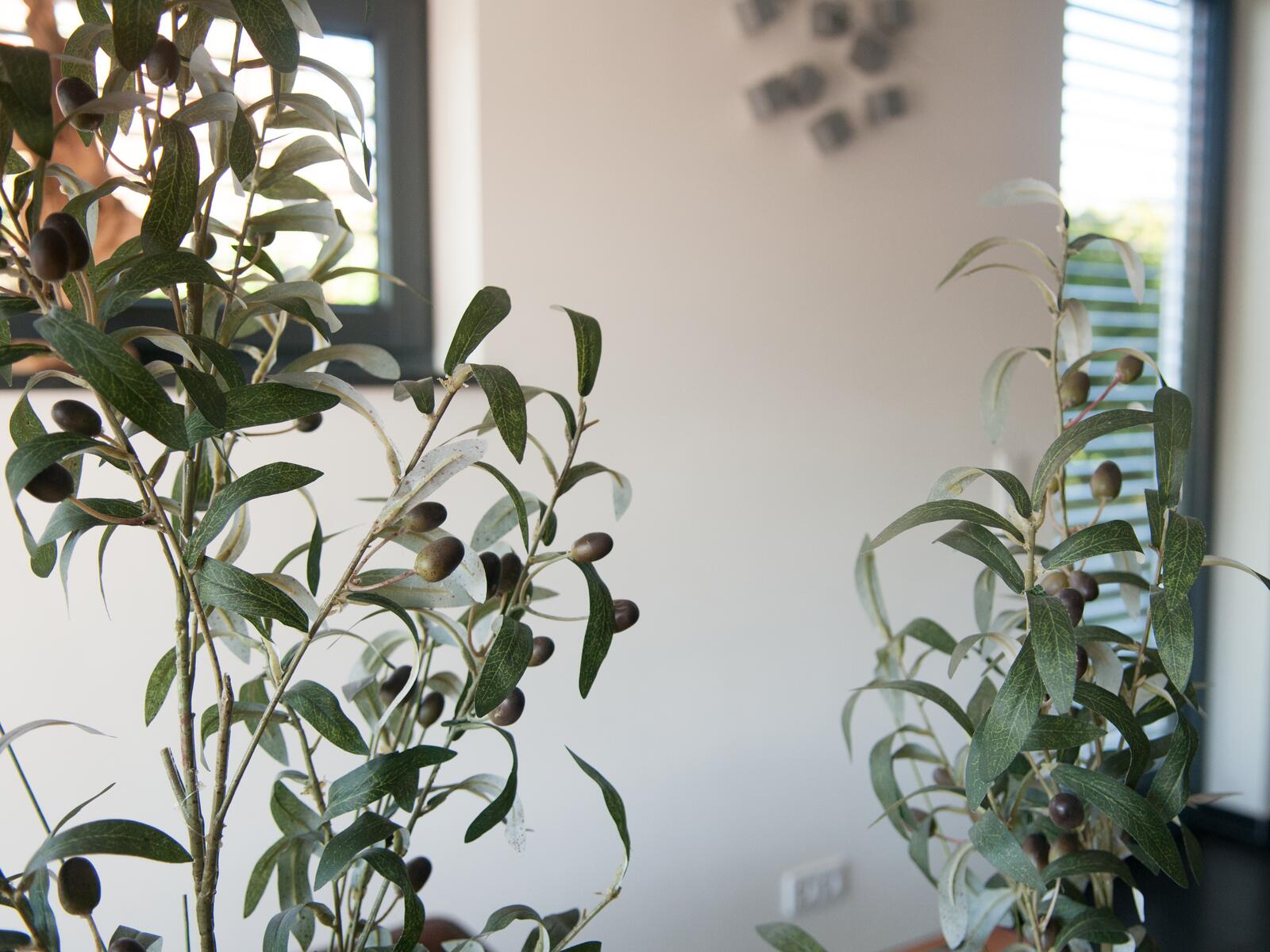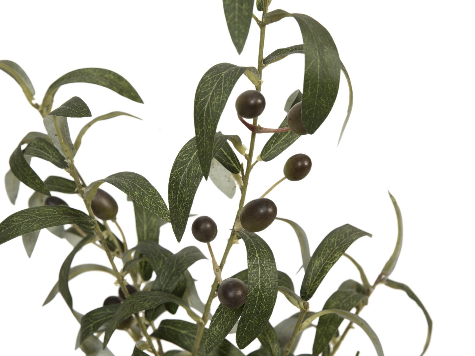 The approx. 68 cm high, evergreen olive bush from Europalms adds a Mediterranean flair even to simply furnished office and living rooms. It already falls into shape by itself when set up and thus saves you time.Real olive trees belong to the olive family. They have been cultivated for many centuries and are among the oldest known crops.During the production of this artificial plant, a lot of attention was paid to lifelike details. This can be seen especially well in the typical leaf design with silver shimmering underside and olives that indicate the different degree of ripeness of the fruits in different shades of color.As a cover of the included basic gardener pot, there are incorporated pebbles and artificial moss. Thus, the pot can serve as a stand for a planter, as well as be used as a decorative pot.