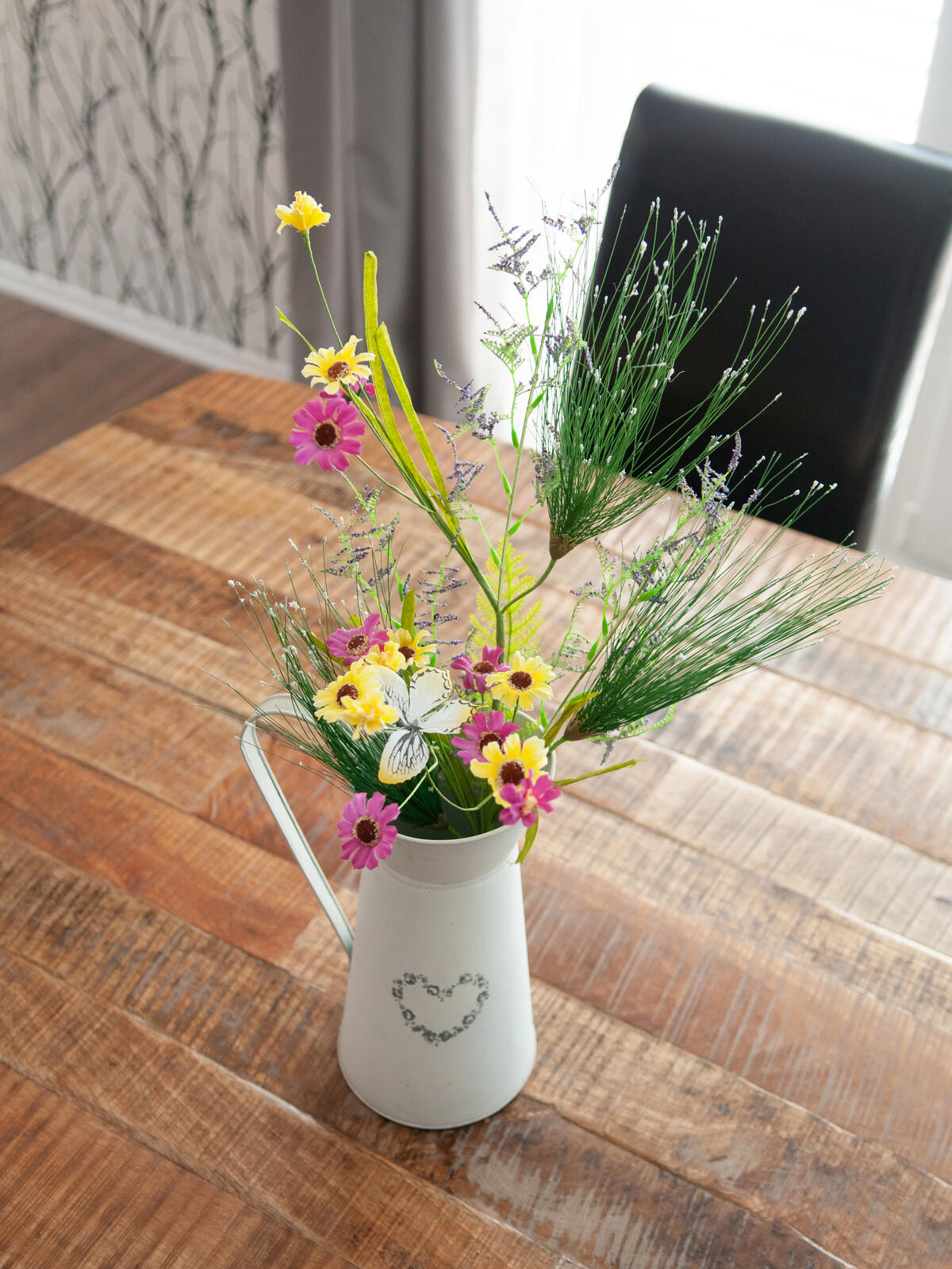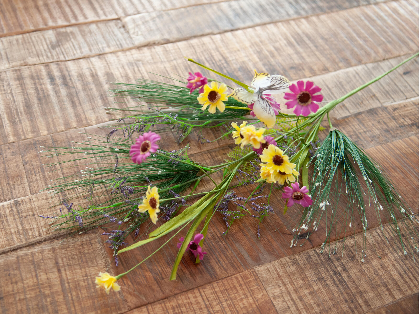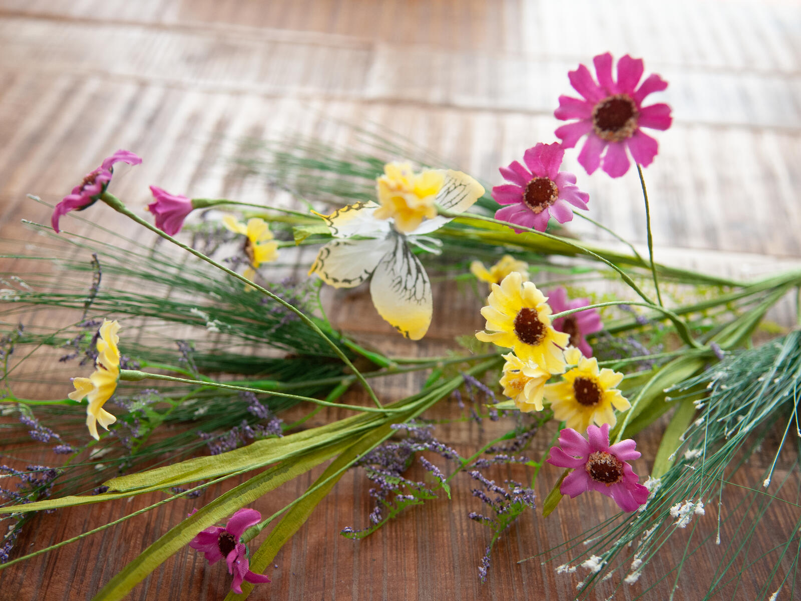 Wild flowers arranged in decorative twig