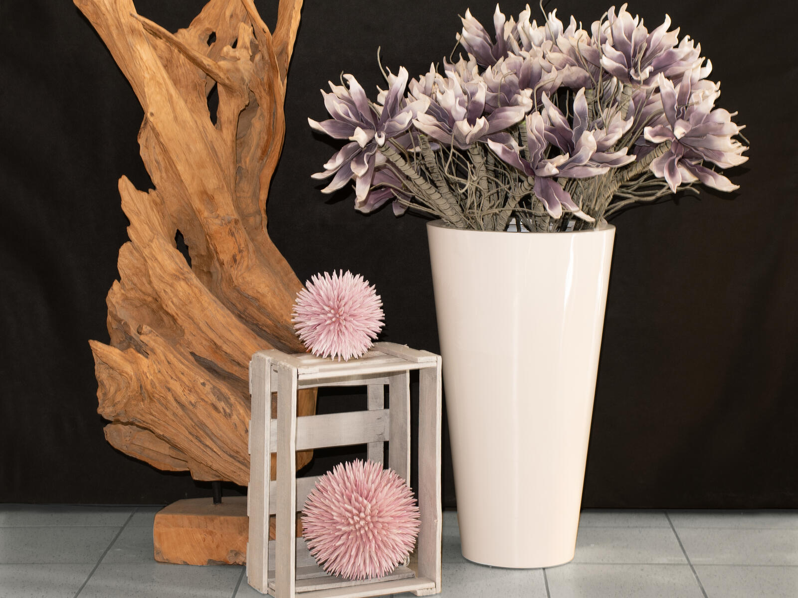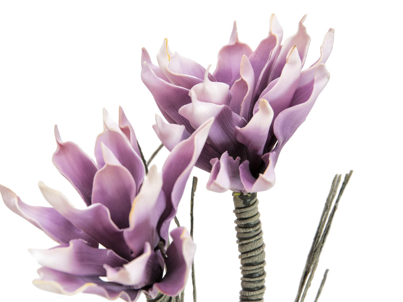 The 100 cm long magnolia branch of Europalms has two large, open purple flowers and small branches. It convinces by a natural color gradient in the petals and enhances your decoration as a stylish accessory. As a design element in your office, your home or as part of an arrangement, the flexible flower branch fits in perfectly.The material EVA (ethylene vinyl acetate) gives you a product with a deceptive look, pleasant feel and high resistance to ageing.Magnolia plants belong to an ancient plant species. In nature, they will transform your garden into a sea of flowers as soon as the first warm days announce spring. Their large, porcelain-like flowers, which usually appear before the leaves shoot, are hard to top by their simple beauty.