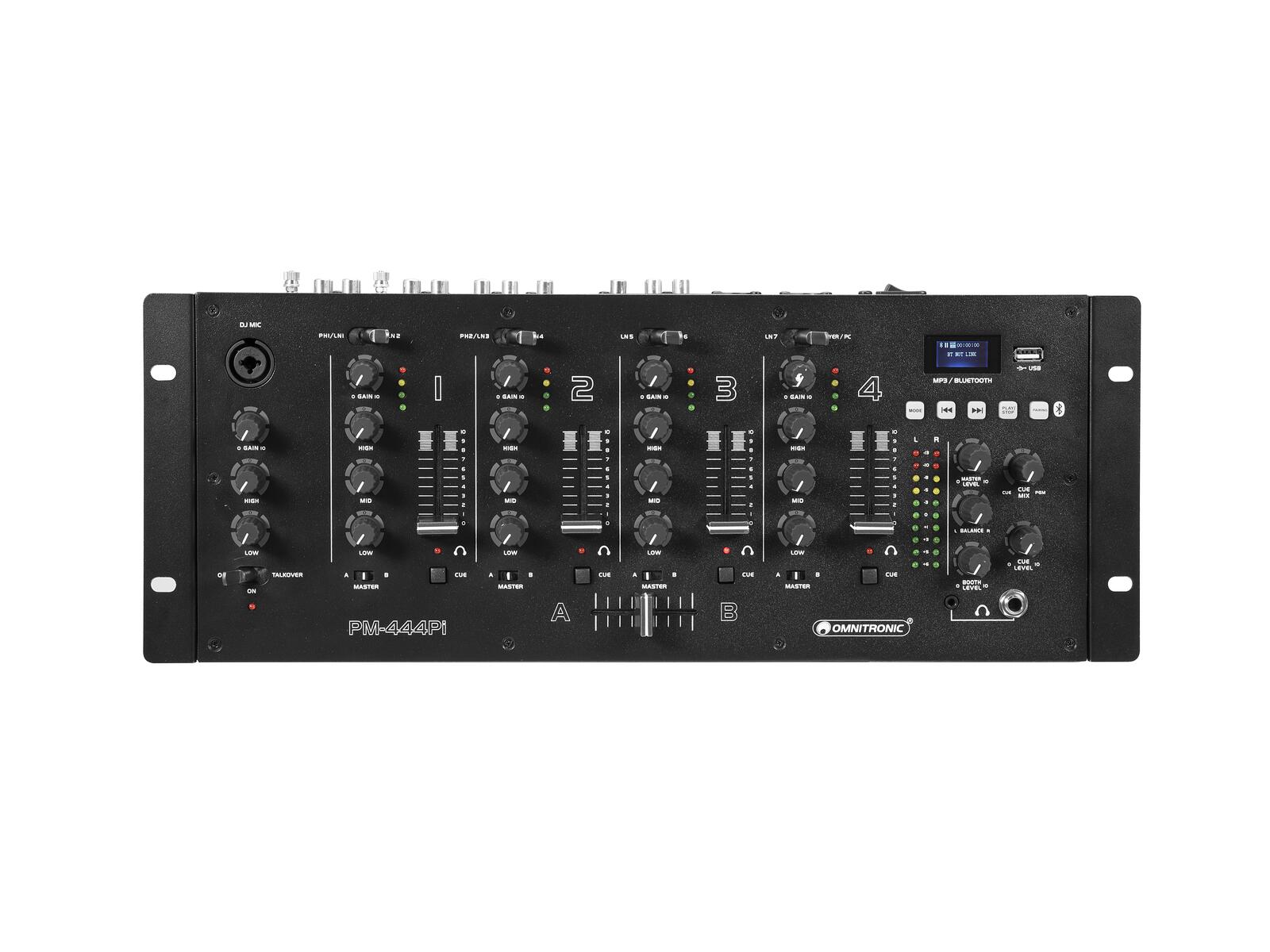 4-channel DJ mixer with Bluetooth, MP3 player and USB interface