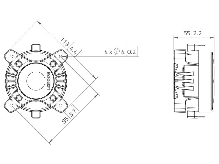 | Speaker: | Compression tweeter highs (1"") approx. 2,5 cm with ferrit magnet Voice coil compression tweeter highs (1"") approx. 2,5 cm Diaphragmmaterial: Polyester |