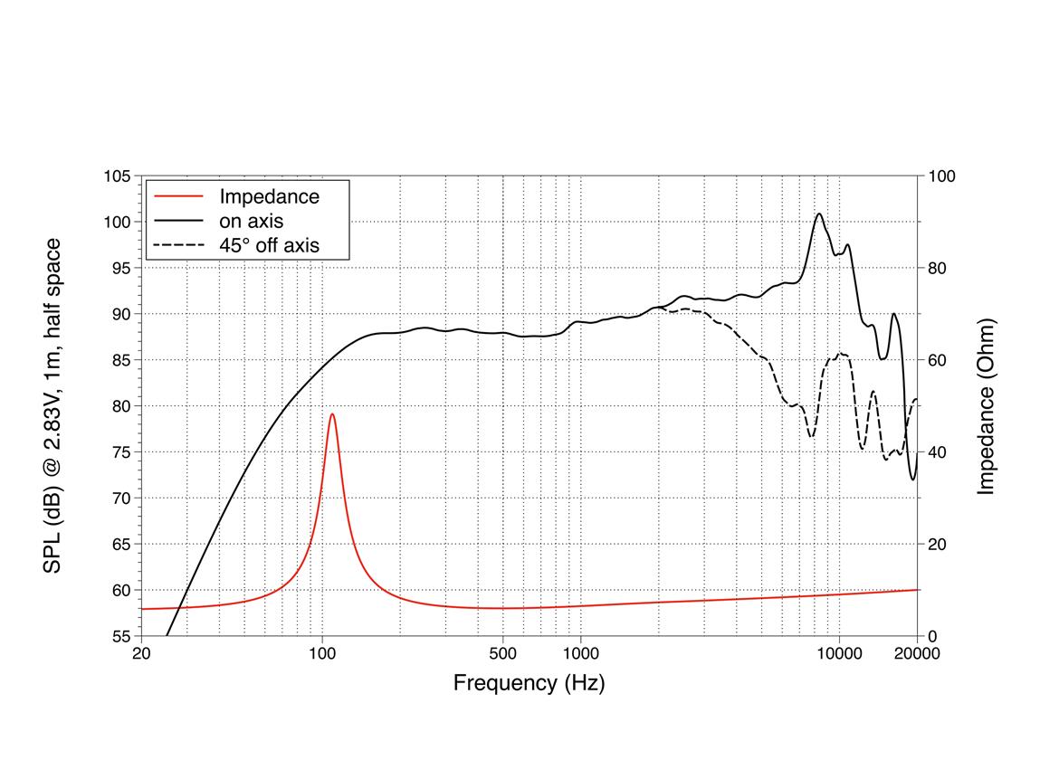 40 W AES, 16 ohms, 89 dB, 110-18000 Hz