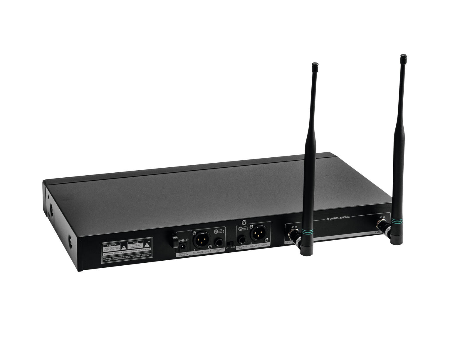 | Connections: | Output: line via 2 x 3-pin XLR Output: line via 2 x 6.3 mm plug (unbal.) Antenna via 2 x BNC (F) 8 V |