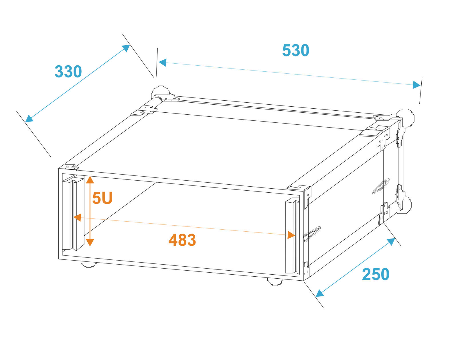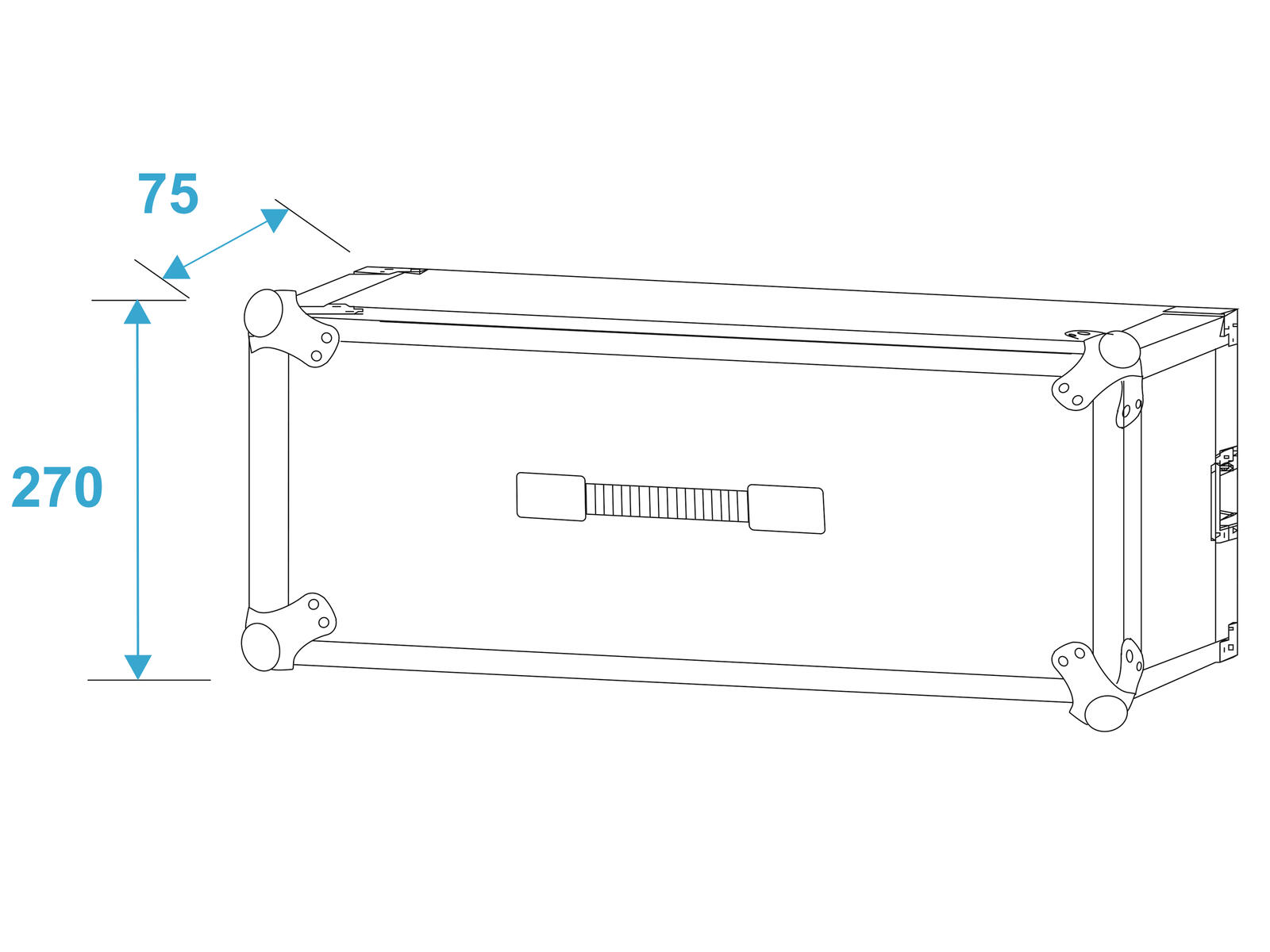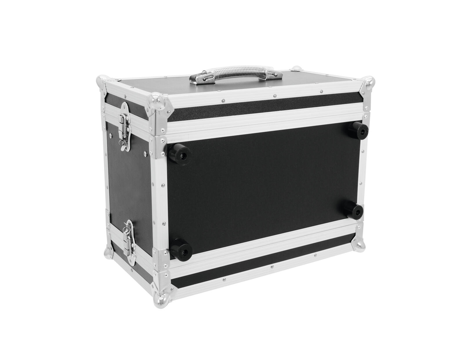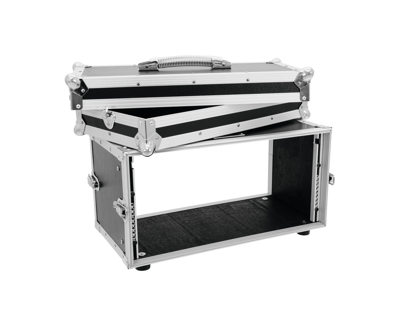 Flightcase for 483 mm units (19"")Transport your 483 mm control and effect units (19"") easily and safely with the ROADINGER effect rack CO DD. Two removable lids (double-door version), four large, steel-reinforced rubber feet and built-in rack rails make handling with the flightcase easy and comfortable.Multi-layered glued wood, the stable aluminium profile frame with rounded corners and three-legged, medium-sized steel ball corners give the case stability.The flight case is equipped with four snap locks with eyelets for locking, built-in rack rails and a handle. The maximum load is 25 kg.