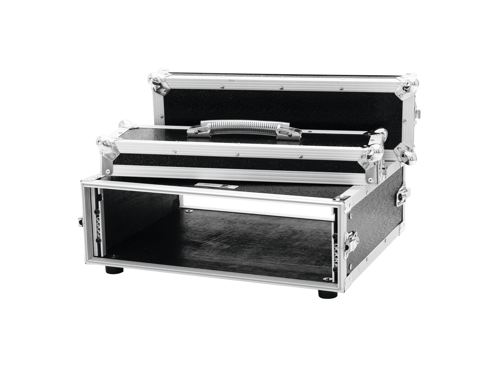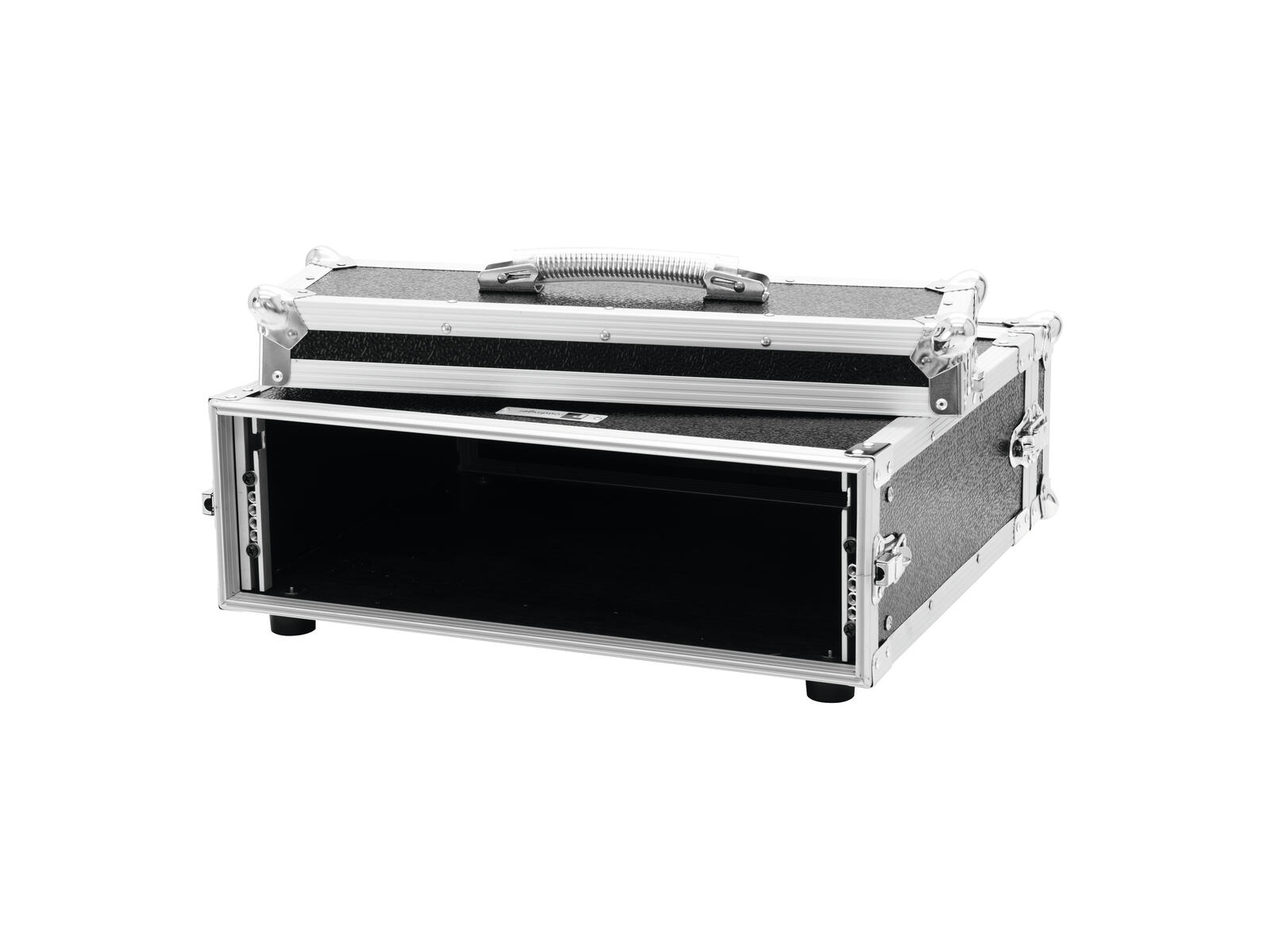 Flightcase for 483 mm units (19"")Transport your 483 mm control and effect units (19"") easily and safely with the ROADINGER effect rack CO DD with 40 cm depth. Two removable lids (double-door version), four large, steel-reinforced rubber feet and built-in rack rails make handling with the flightcase easy and comfortable.Multi-layered glued wood, the stable aluminium profile frame with rounded corners and three-legged, medium-sized steel ball corners give the case stability.The flight case is equipped with four snap locks with eyelets for locking, built-in rack rails and a case handle. The maximum load is 25 kg.