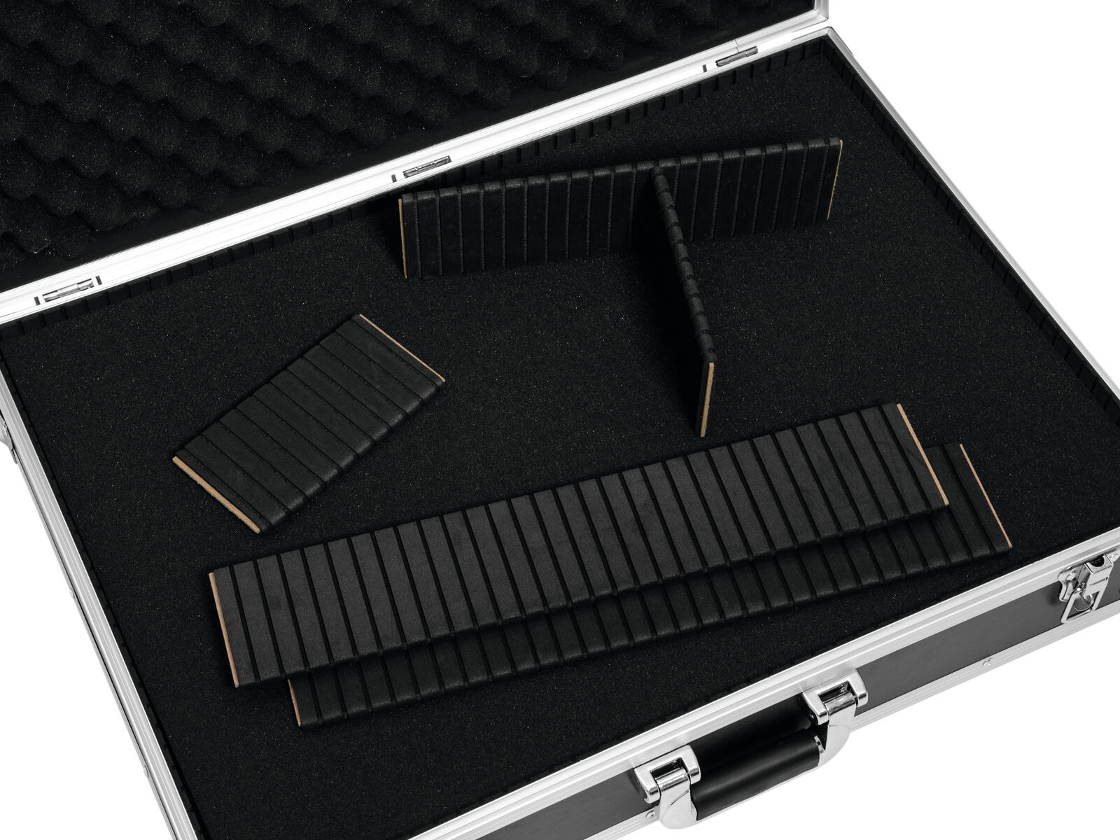 All-purpose flight case with cube foamThe ROADINGER universal case pick is equipped with high-strength foam padding and cube foam. This allows you to adapt your case to your equipment individually. The inner part can therefore be divided without cutting or further processing. The high-quality workmanship with multi-layer glued wood, aluminium profile frame with rounded corners and three-legged, medium-sized steel ball corners give the case stability.The flight case also has two lockable snap locks and a robust carrying handle.