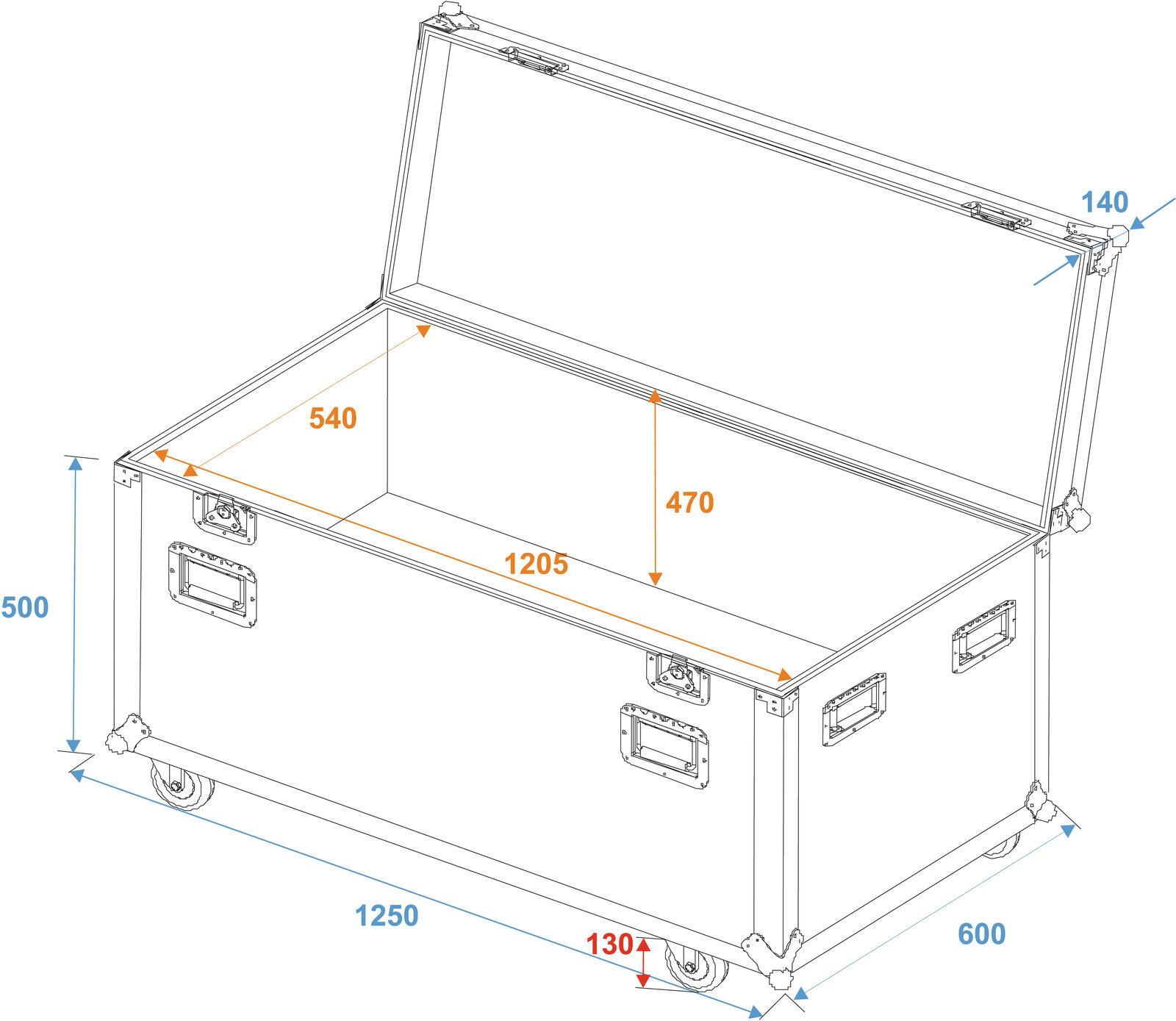 | Inside dimensions: | 1,205 m x 54 cm x 47 cm |