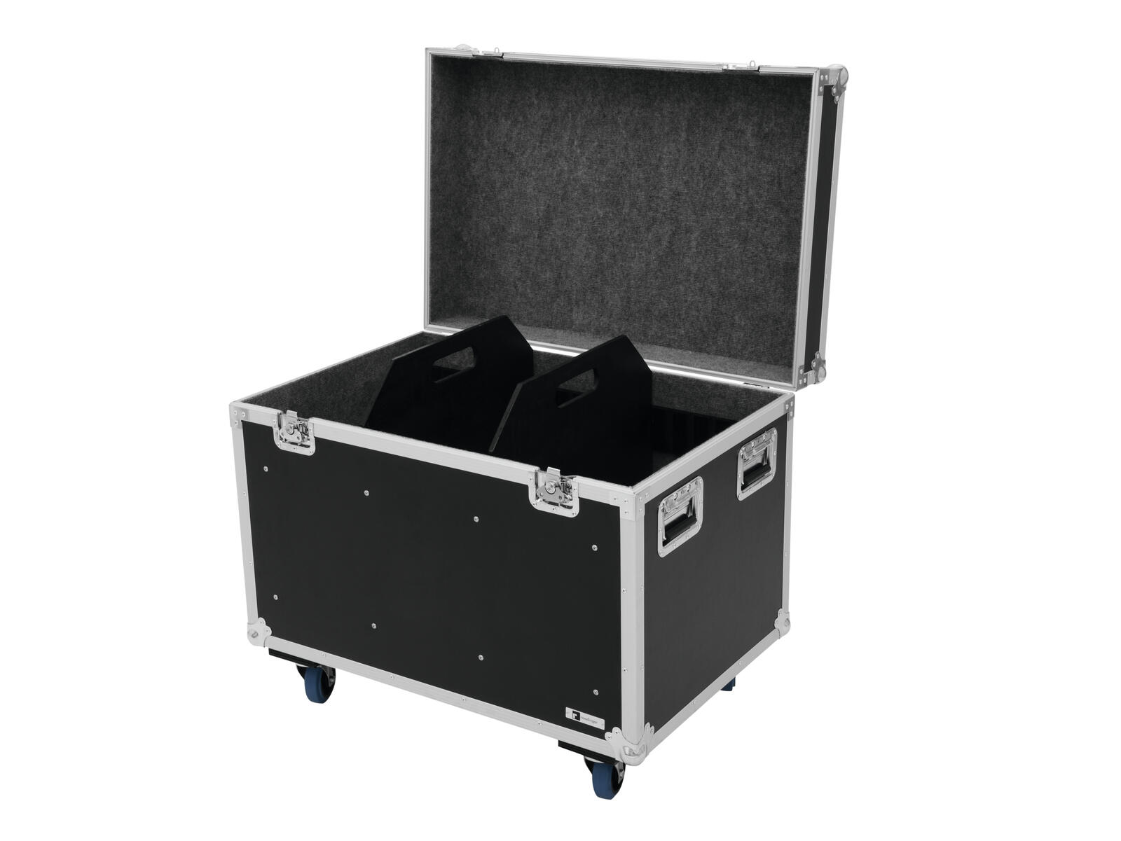 Flightcase with castors and 2 dividers