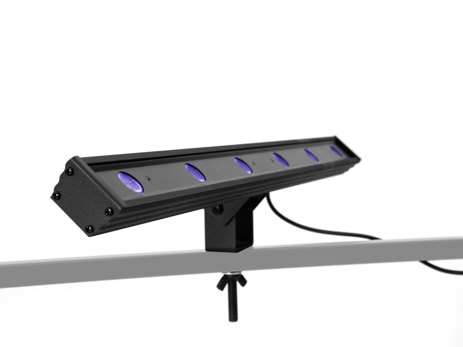 The Antari DarkFX Strip 510 is an efficient high-output and low-power consumption UV LED bar that delivers a peak wavelength of 365nm and radiant flux output of 4500 mW at full intensity with minimum visible light. This ensures all UV-reactive materials reflect perfectly with stunningly bright and vivid colors. Equipped with 6 x 1.9 W high-power UV LEDs, it features a 25º narrow beam angle, flicker-free operation, and special optics to prevent wear degradation from high UV exposure. This IP20-rated LED bar comes with an aluminium housing with an adjustable bracket for versatile mounting options.The Antari DarkFX Drive 4 or Drive 4 MKII fixture driver (sold separately) is required for power and DMX control.