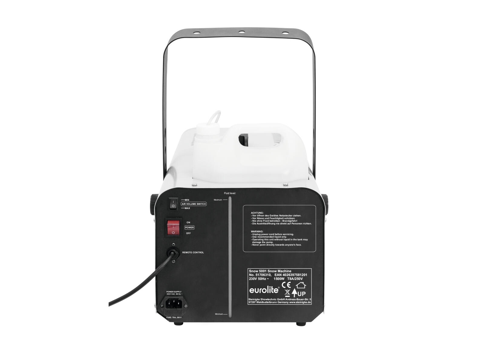 - Snow output is controlled via the control unit at the remote control