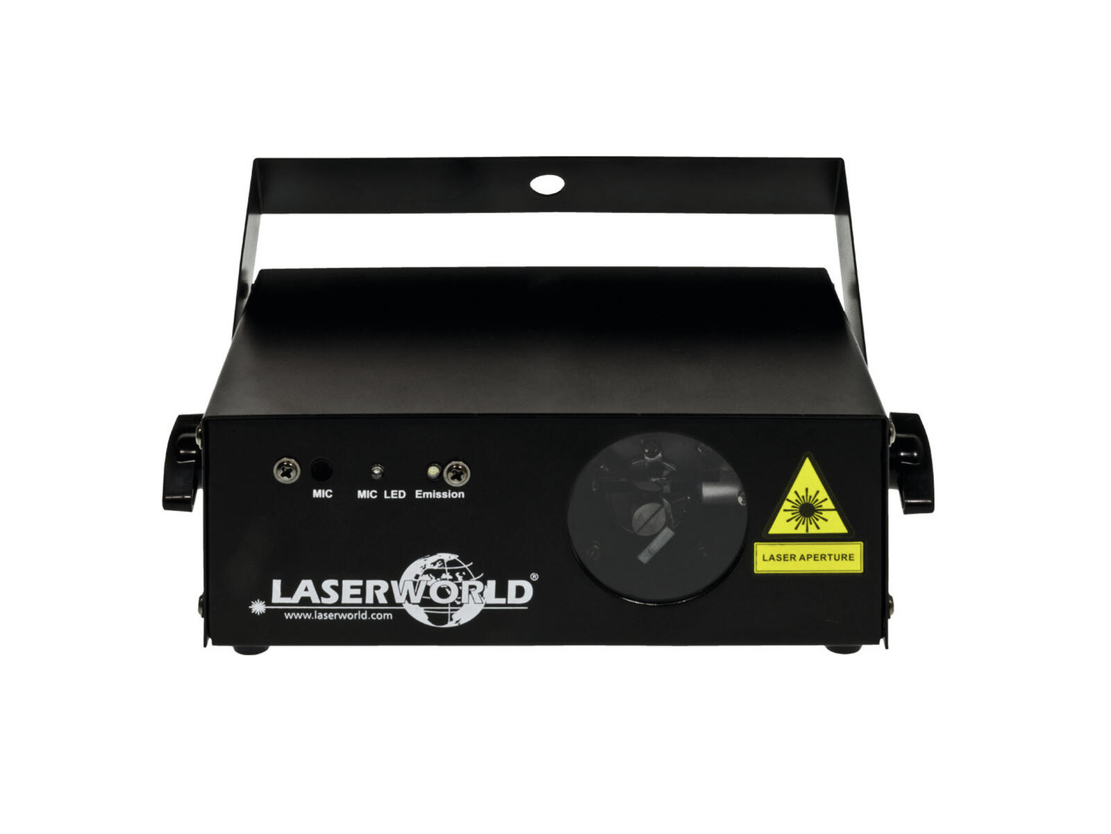 The Laserworld EL-60G is a green single color laser system with a total output power of up to 60 mW.The green DPSS laser module with a wavelength of 532 nm ensures a high visibility and brightness. At the same time the projector has good beam specifications with a beam diameter of about 3 mm and beam divergence of about 1.5 mrad and it offers high-speed stepper motors with 2-5 kpps as well as a scan angle of up to 30º. Approximately 50 preset basic patterns, like layers, tunnels, fences, waves etc. are available in the sound-to-light mode. For this mode the sensitivity of the integrated adjustable microphone can be altered. There is an on-off switch as well as an key switch at the rear side of this very compact device.The Laserworld EL-60G is a very affordable solution for first-time users and it is often used in bars, small clubs, at private parties or home use.