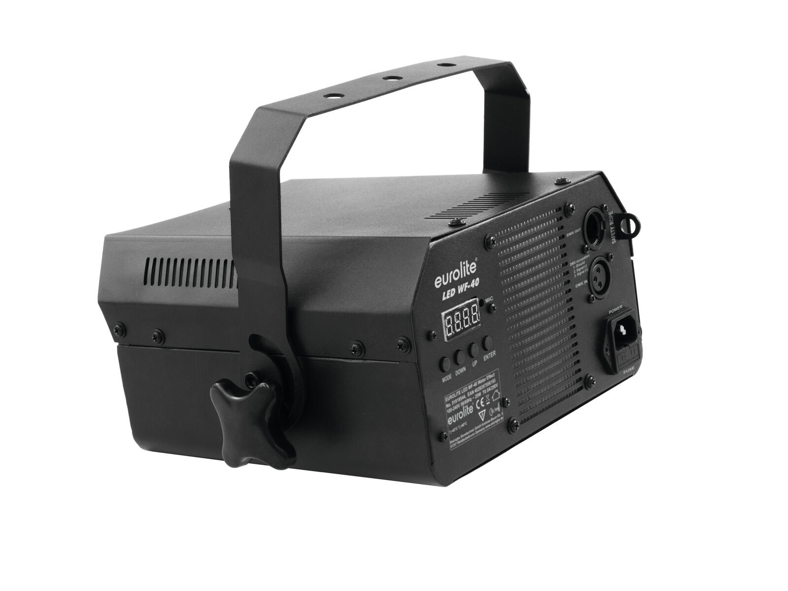 The LED WF-40 Water Effect by Eurolite turns every room into a swimming pool. The built-in COB LED projects colorful effects in red, green, blue and white onto the walls pulsating in the rhythm of water. With this lighting effect you easily create a relaxed ambience in bars, clubs, lounges and on stage.The WF-40 operates almost silently so that you can completely lose yourself in the atmospheric lights of the ocean. You can choose between the DMX operating mode and the stand-alone mode. What is more, the Water Effect is equipped with a microphone for adjusting the light show to the rhythm of the music, which makes this LED light effect perfectly suitable for parties. You can dim the light, adjust the colors according to your requirements or let the preset programs choose the colors. You can also add a thrilling strobe effect with the speed either regulated by you or by chance. Of course, the WF-40 is delivered ready to use and with bracket - plug and play! It's entirely up to you whether you want to use the WF-40 to relax or to throw a party!