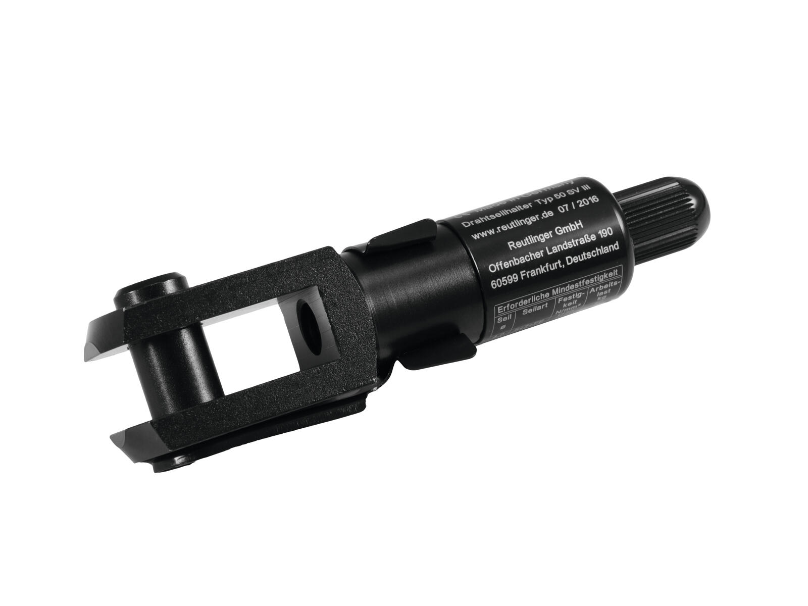 Certified cable holderCable holders can be used for easily suspending static workloads on attachment ropes. No tools are required. The load can be hung at any position and height and easily be re-positioned.The REUTLINGER cable holders are the only system certified by two independant certification bodies. This cable holder boasts of a TUV certificate and a German BGV C1 certificate and can be used in entertainment technology.TÜV GS and BGV C1 - double-tested and double-certifiedREUTLINGER® grippers type 50 SV III, type 66 SV III and type 80 SV III are not only certified as safe (GS) by the German TÜV, they have also been licensed for use within the scope of standard DGUV Regulation 17 (BGV C1).The DGUV Test certificate authorises these grippers for use within the scope of the accident prevention regulations issued by the German employers' liability insurance associations in respect of staging and production facilities.The test seal of the DGUV is conferred only after extensive examining of all load applications. Further testing simulated most anticipated mis-applications.REUTLINGER® gripper ranges 50, 66 and 80 are the only load-bearing devices certified by the DGUV for use in mobile production facilities.
