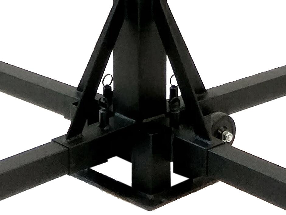 - Booms with adjustable spindle and steel plate with non-slip rubber base