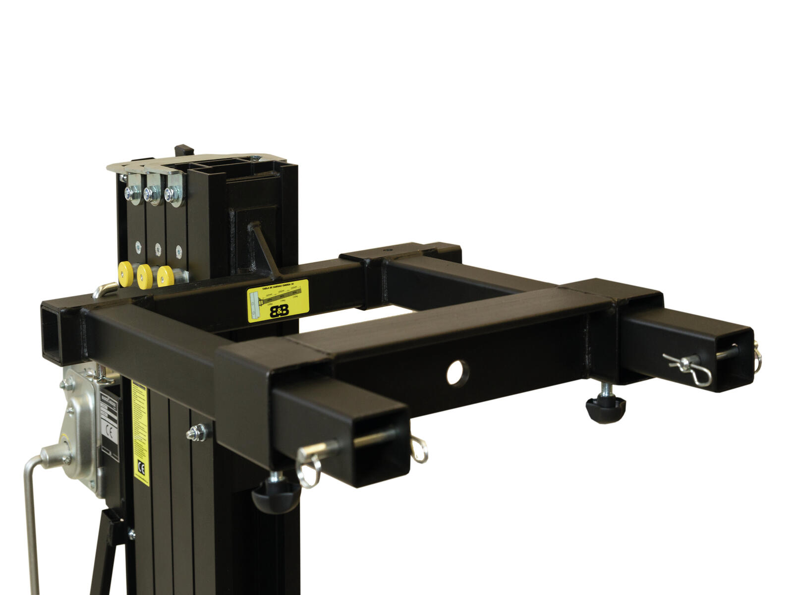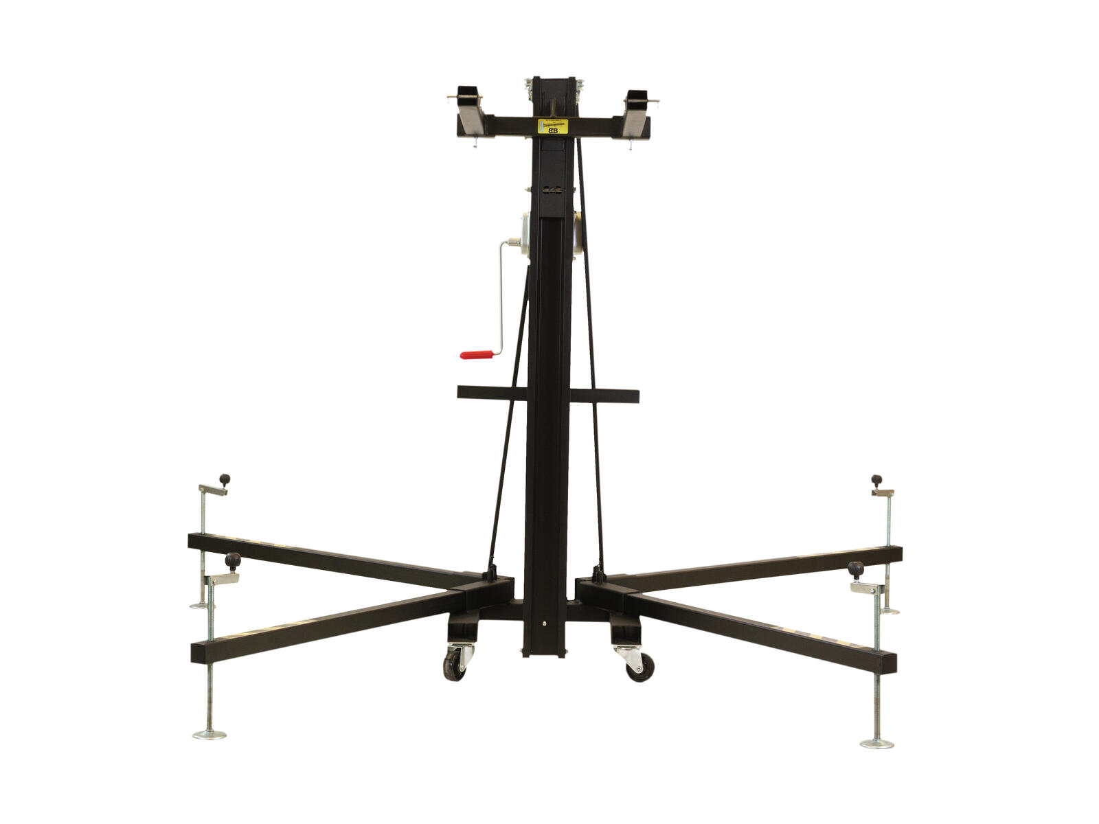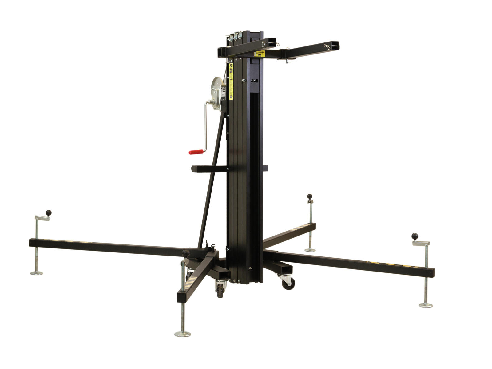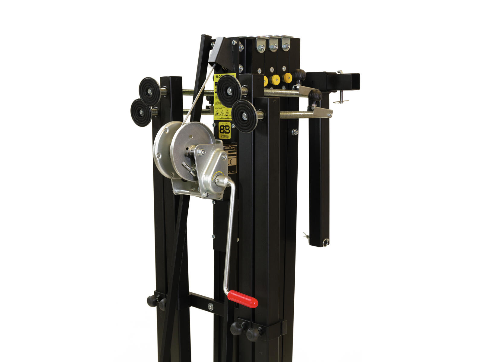 - Booms with adjustable spindle and steel plate with non-slip rubber base