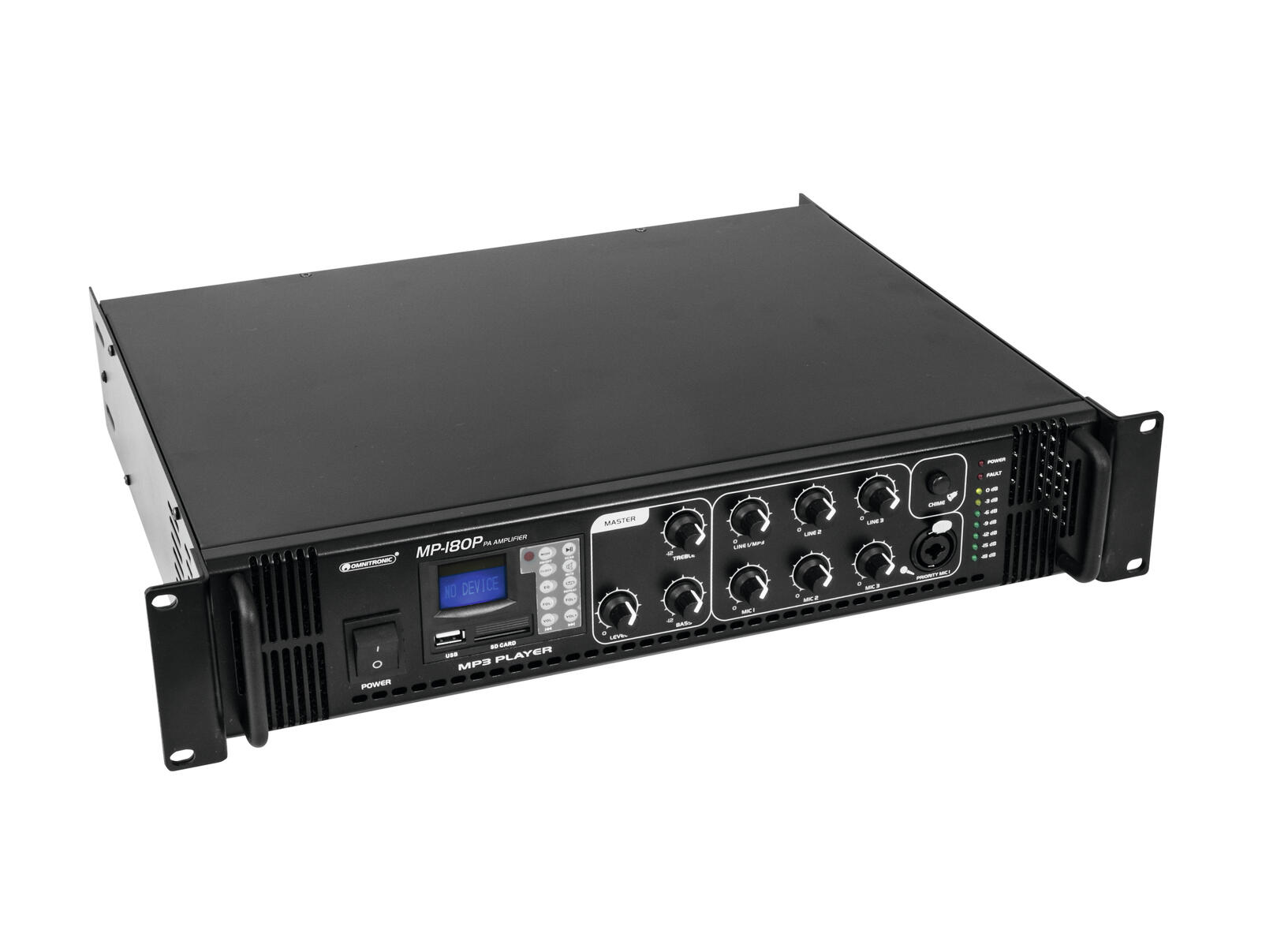 PA mono mixing amplifier with MP3 player and IR remote control, 180 watts