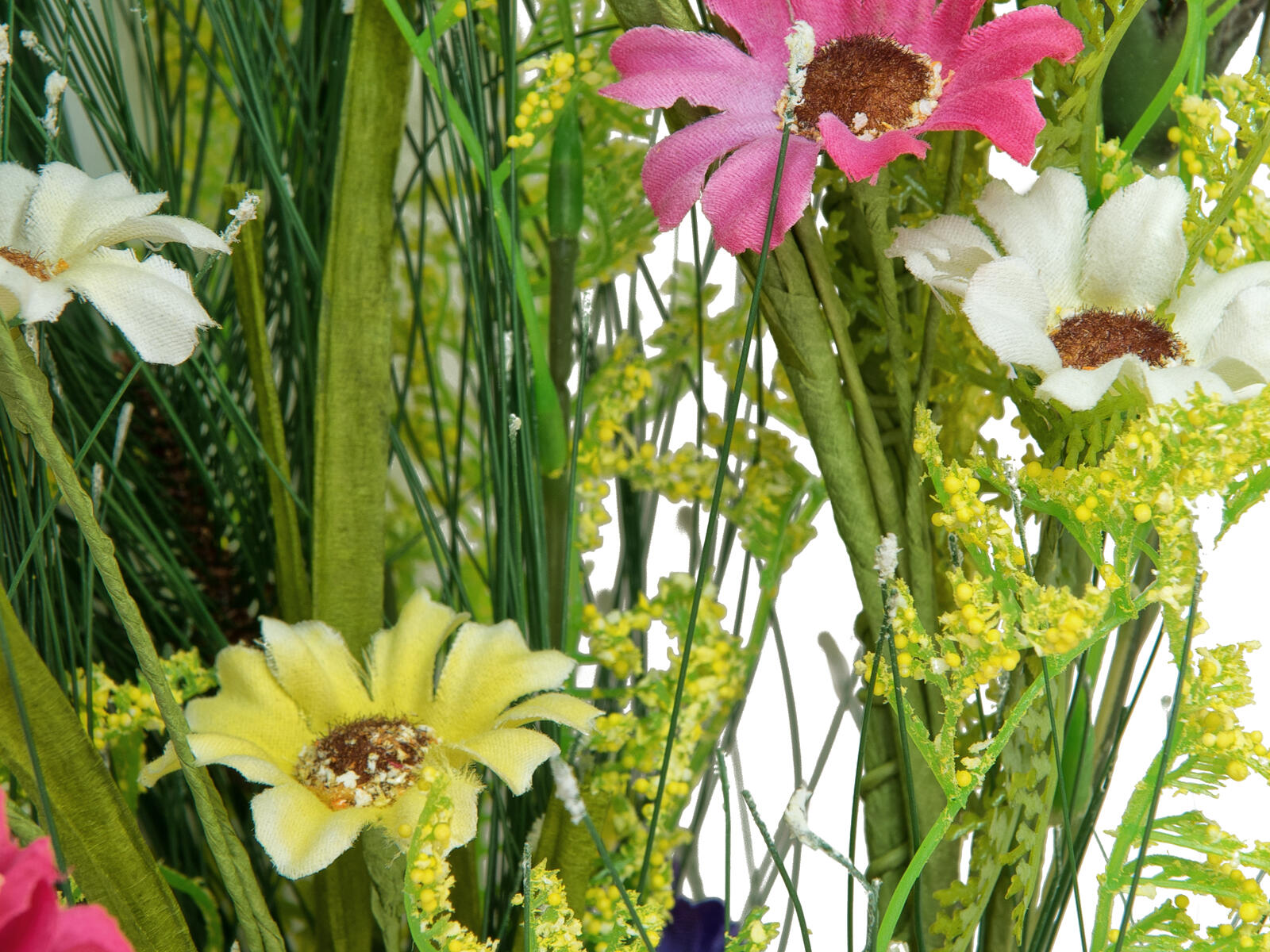 | Flowers: | Color: white P(material: ); color: yellow P(material: ); color: blue P(material: ); color: pink P(material: ) |