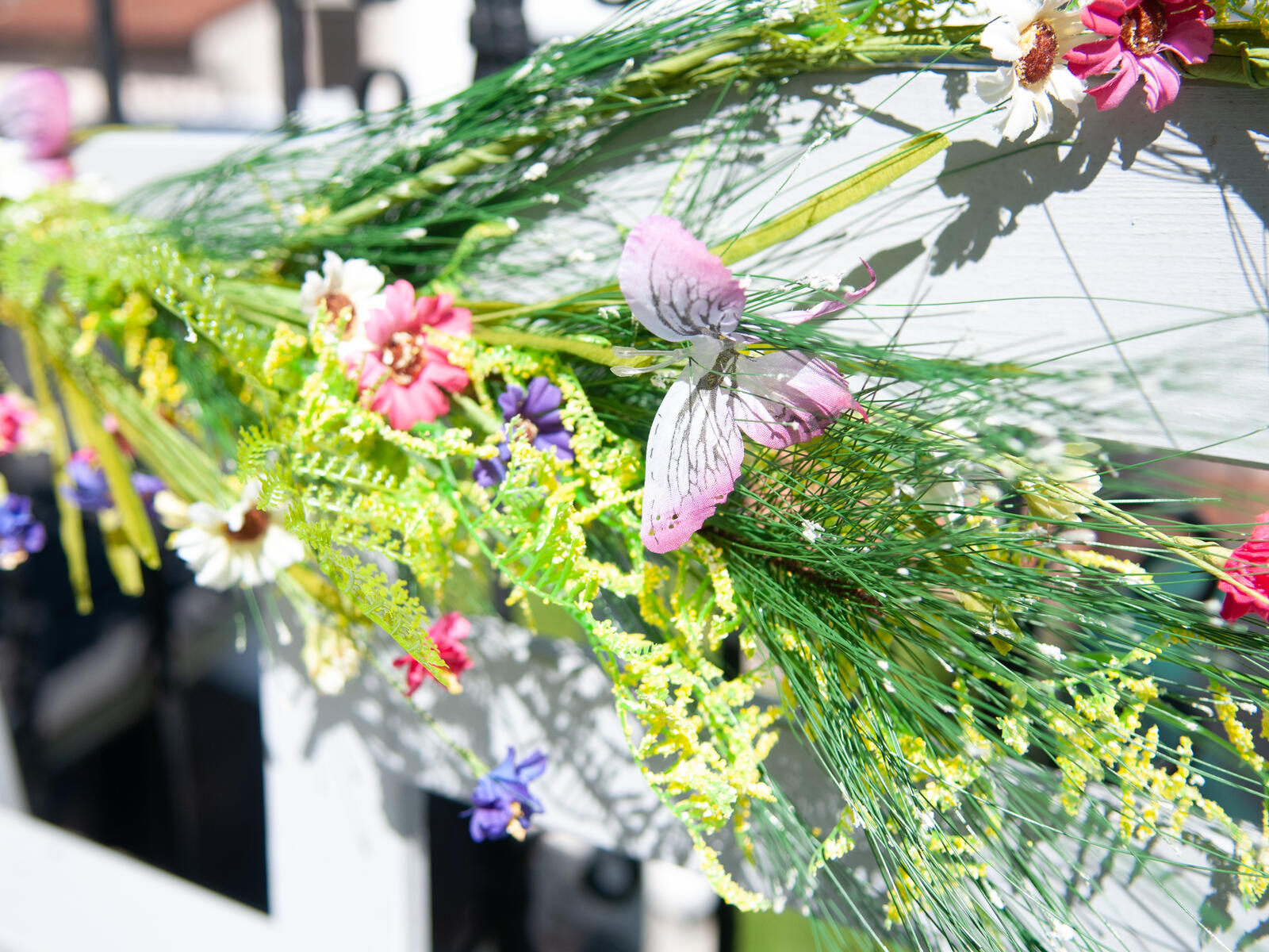 Wild flowers arranged in decorative garland