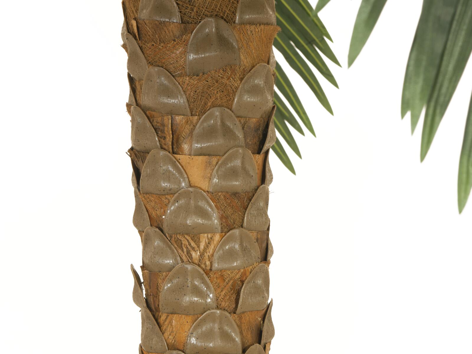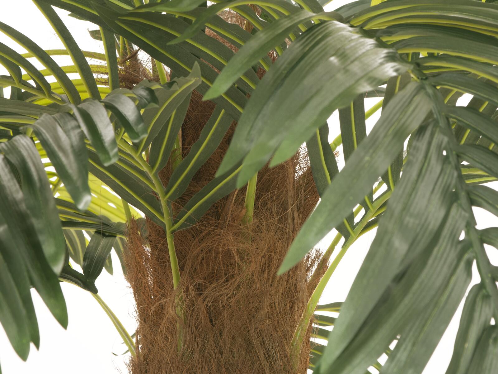 You would like southern flair for your catering business, wellness area or for your beach party? Then this palm from Europalms should not be missing.It is available in two different sizes and with its impressive appearance cannot be overlooked. The artificial trunk is wrapped with real palm fibre material and in the palm head there are already insertion devices for the palm fronds.The palm leaves are made of high-quality textile material. Optionally we recommend to treat them in regular intervals with a UV-protection spray, so that you can enjoy your palm for a long time.Included in the delivery is a basic gardener's pot, which gives the plant a stable stand when placed in a planter.
