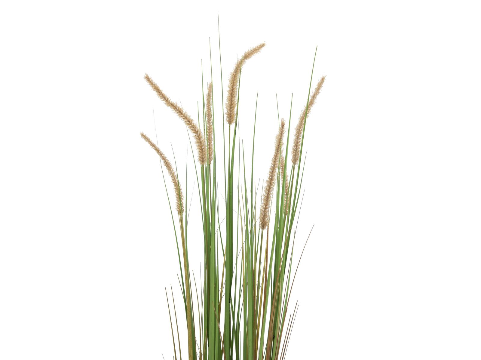 Bring decorative greenery into your home and offices with the artificial lampbane grass! During the production of the approx. 120 cm tall ornamental grass, a lot of attention was paid to lifelike details: starting with the pseudo-ears, which resemble lamp cleaner brushes, to the slender, filigree leaves in various shades of brown and green. The stalks with their cylindrical inflorescence are graduated in height and surrounded by lush tufts of grass. These already fall into shape by themselves when placed. No time-consuming plucking is necessary.A plain gardener's pot makes it easier for you to pot them in a suitable planter and serves to better hold the artificial plant.