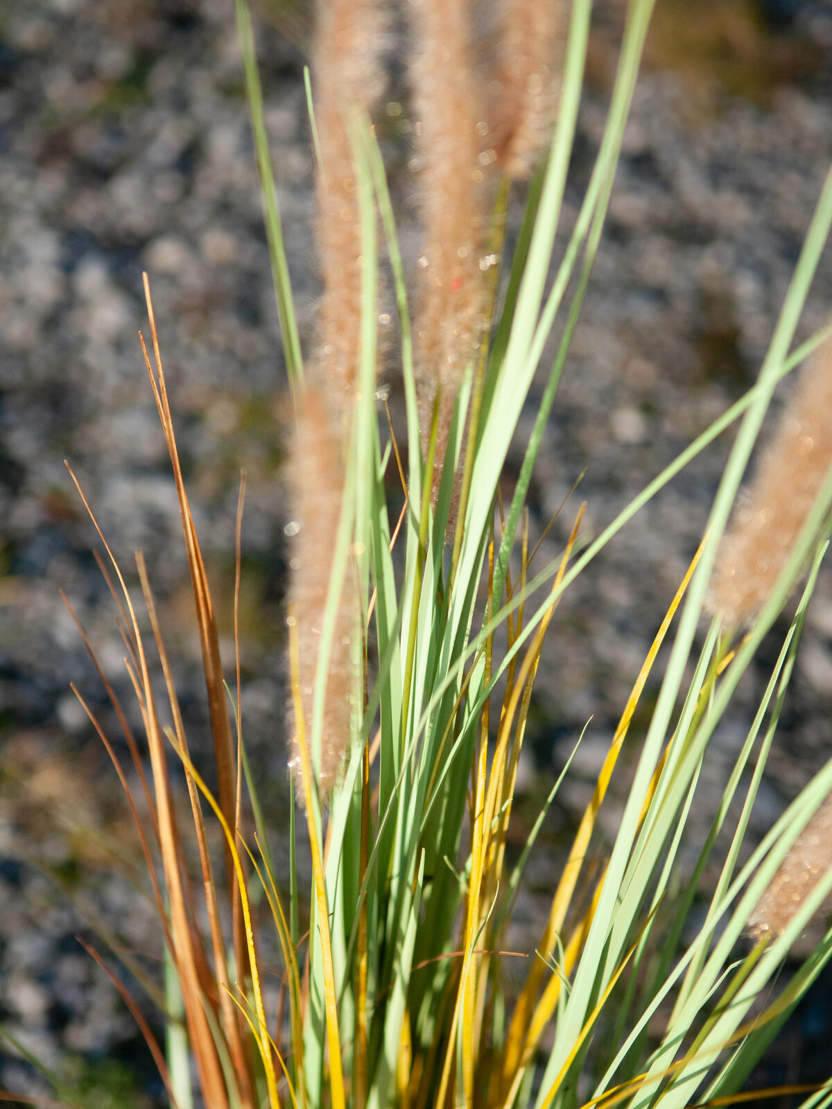 Fountain grass in autumnal colors, in pot