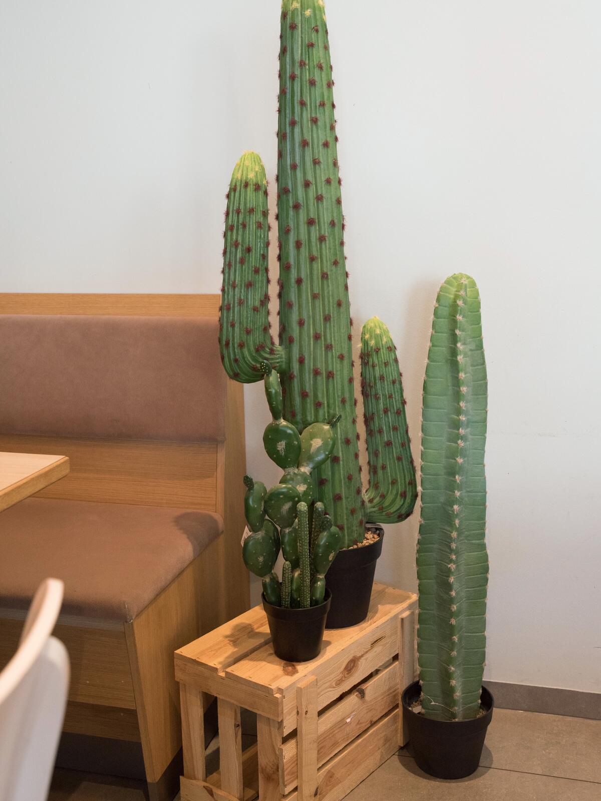 The narrow cactus column from Europalms is a good alternative if you have little space available. The decorative cactus is made of high-quality plastic and hardly shows any difference to its natural model. The spines or thorns are made of soft material and therefore a harmless alternative to the original plant.It can be used as a single plant or as a supplement to an existing arrangement. Design a desert landscape or your decorative eye-catcher in the wellness area, your restaurant or in your rooms at home according to your own ideas and wishes.Included in the delivery is a basic gardener's pot covered with small stones, which gives the plant a stable stand when placed in a planter.
