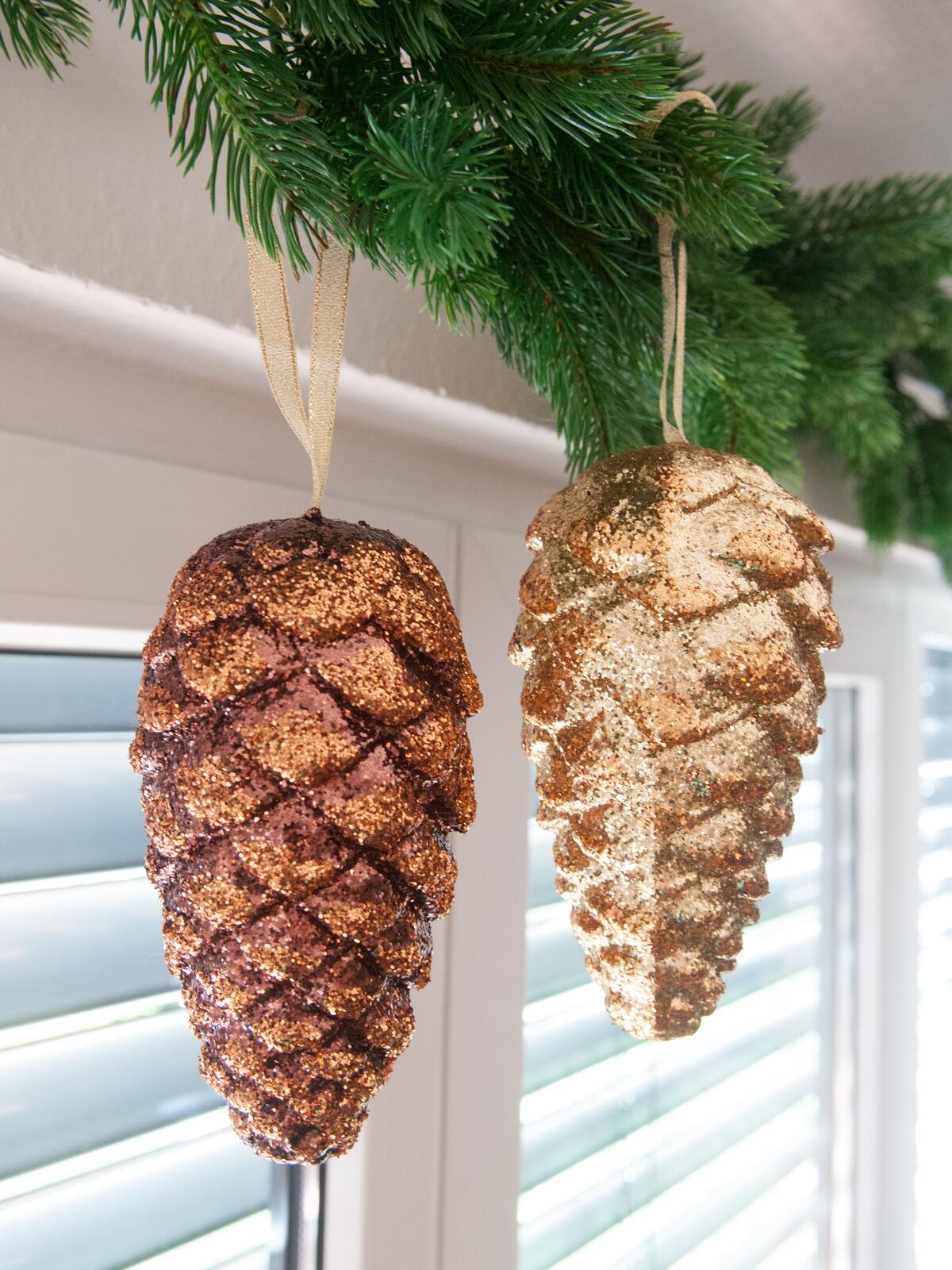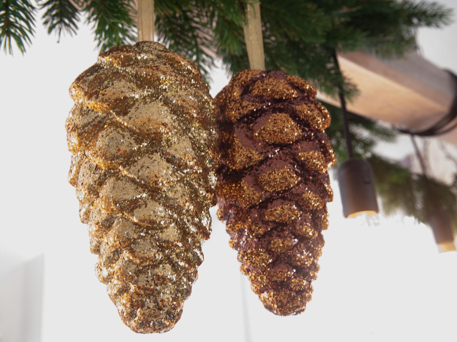 Catch the special magic of the pre-Christmas season at your home or in your hotel and restaurant. Whether traditional, nobly modern interpreted or decorated with natural materials - the golden fir cone hanger from Europalms is the ideal addition to your Christmas decoration.The artificial decorative cone is designed like an oversized fir cone and is decorated with sparkling glitter particles. It has a length of approx. 18 cm and is delivered with a golden ribbon for hanging. Placed near a light source, the glitter effect is particularly effective.
