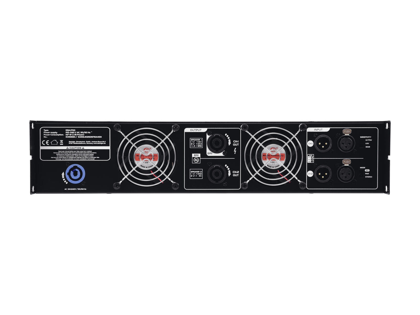 | Output power: | 2 x 850 W RMS (4 ohms) 2 x 500 W RMS (8 ohms) 1 x 1700 W RMS bridged (8 ohms) |
